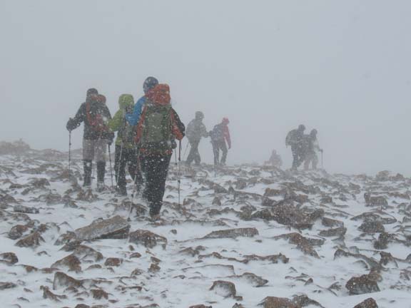 If you’ve ever seen a mountain goat leap, that was me.  I grabbed my backpack and boots and ran out the door. In my haste I forgot my hardcore foul weather gear: ski goggles and waterproof mitts.  It was mid-May, after all.  I was the last to arrive at the meeting spot; hardly anyone had cancelled.