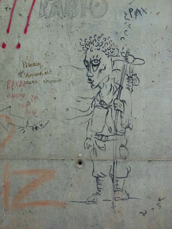 Another American gave him some Tylenol.  Later, after the hubbub subsided, he told me that he had started to get cold but was too lazy to put on warmer clothes.  And he had walked 90km (54 miles) in three days, no small distance.  Then he remembered that I had told him pack was tilted.