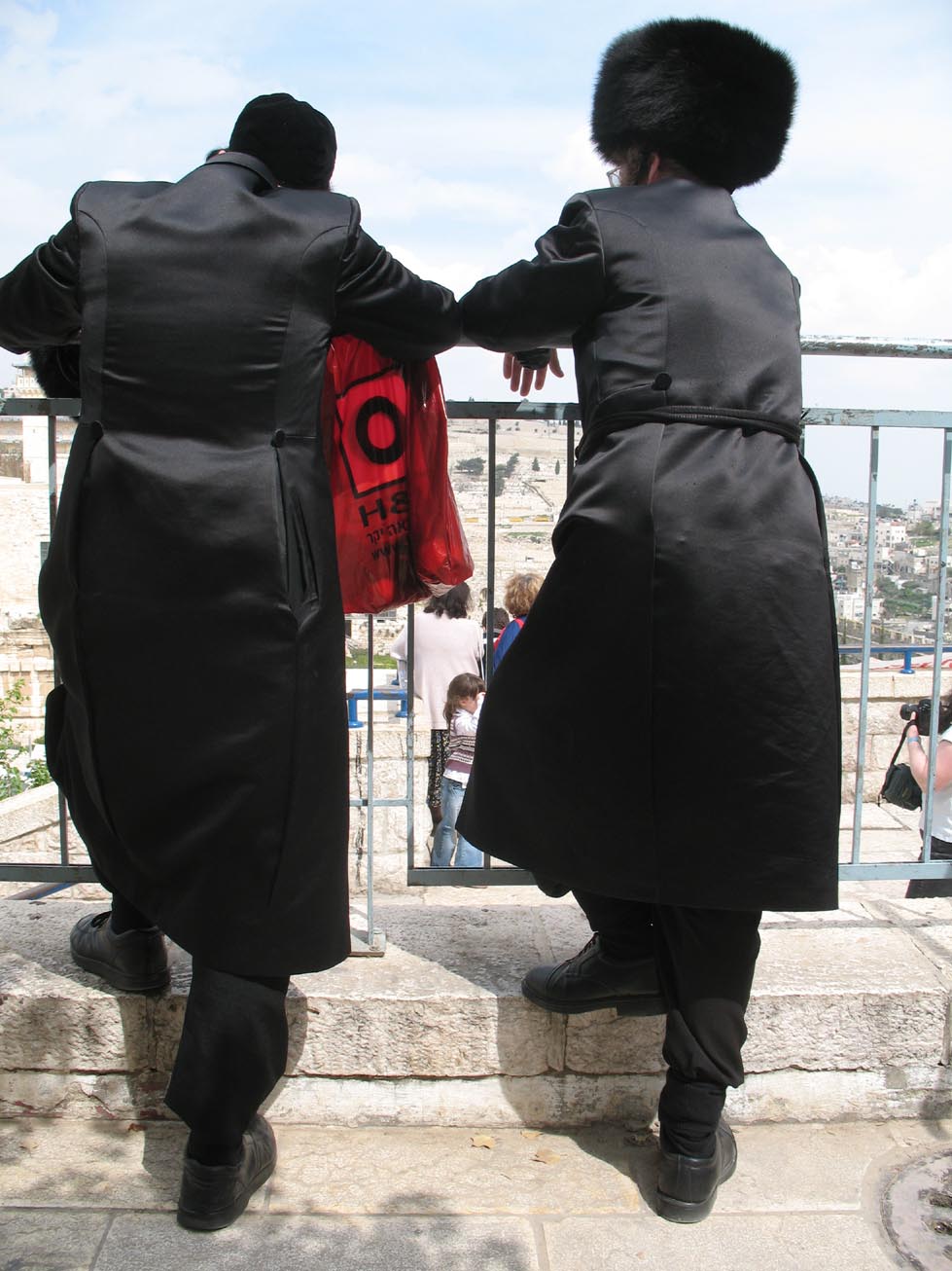 While the faithful I observed were certainly not strutting their stuff along an elevated platform, I wondered what the Creator thought of these representations of Itself as expressed in fabric, mostly flowing but some gently clinging. Did all of these religions succeed in fulfilling the “brief” to dress in a respectful manner? Did the Creator nod approvingly or grimace that some men in hot, dusty Israel wear clothing more suitable for a cooler Polish climate? What would a panel of practical archangels have to say about all this?  Would they criticize a floor-length vestment for increasing the danger of tripping, especially on the Old City’s slickly cobbled streets?  What if this heavenly panel decreed a new era in spiritual garb, forbidding cloaks and cassocks and insisted that teams of designers, each from a different religion, find common ground and create prototypes for something new (maybe cruise wear for clerics)?