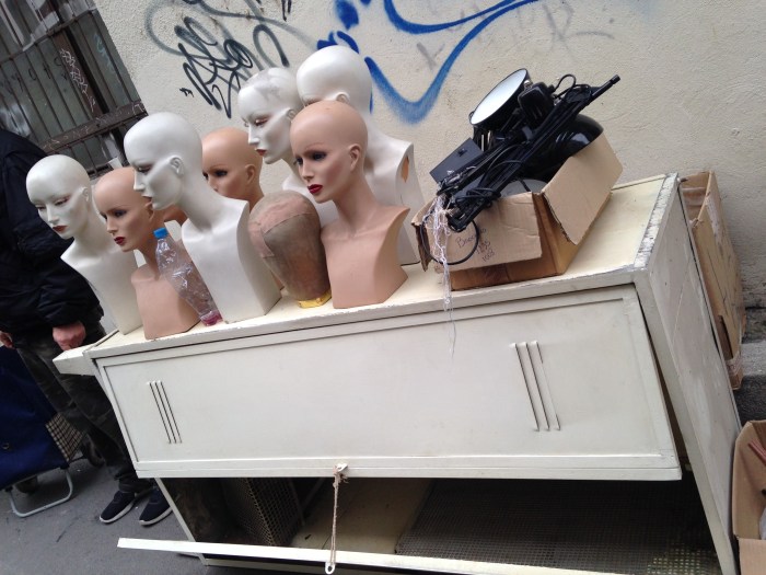 Thanks to the location of my quirky Budapest rental, I had a front row seat to one of the more fascinating shows in town: lomtalanítás, which I’ll translate as “get rid of junk” day. The city offers one day of free haulage annually for its 23 districts, staggering them across the calendar. I had not known about this event until I left my apartment on “Black Friday”, when District VII became the stage. Apocalyptic piles confronted me on each block. Haphazard stacks of defunct refrigerators, floppy mattresses, stained carpets, torn and rotting chairs, smashed televisions, antiquated desktops and calculators, books and photographs, twisted bundles of fabric, busted umbrellas, collapsed couches, and worn shoes, among other things, squeezed pedestrian access, buried fire hydrants and spilled into precious parking spots. It’s as if every building had evicted a portion of it contents in a collective “KonMari” purge, raising trash day to an nth power.