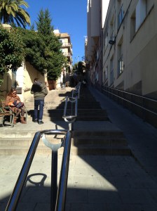 The more I climbed the steps, both up and down, the better I felt. The prize for walking uphill is increasingly better views. Going downhill offers a sense of ease and exhilaration. The fresh air and bright sun are salutary. On the days I take public transit or spend time in the flatter sections of town, I miss the stimulation of the steps and the mental focus they require. Barcelona is probably the only StairMaster I will ever love.
