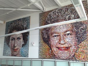 After exiting that first train to find the second one, a man asked me in non-native Spanish if it went to the airport. I pointed to the airplane logo above the platform and told him it did. Curious about his accent, I asked where he was from. The Netherlands, he said. We proceeded to chat in our respective semi-decent Spanish until the train arrived. That this man was committed to practicing Spanish until the end of his trip, even though he could have switched to English, delighted me as it gave me the same opportunity. When I landed in London to change planes, two large photo mosaics of the Queen stopped me in my tracks long enough to read about the art and take a few pictures. It was only when I interacted with a British gate agent and was met by a stiff upper lip rather than greetings of “Hola, guapa!” (Hi, gorgeous!), that I noticed how much I missed hearing Spanish and how much the language and the friendly expressions had buoyed my spirits. It’s as if the music had started to wind down at the ball and I could hear the clock ticking towards midnight.